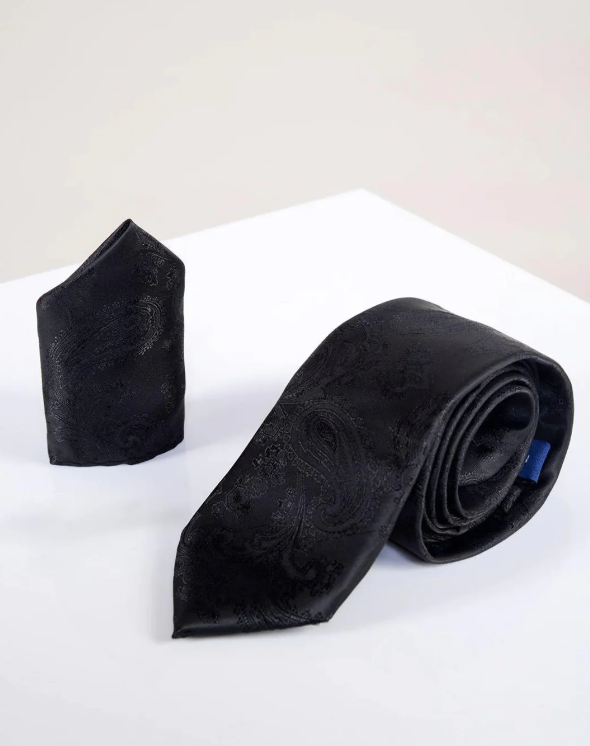 MD Black Paisley Tie & Pocket Square Set