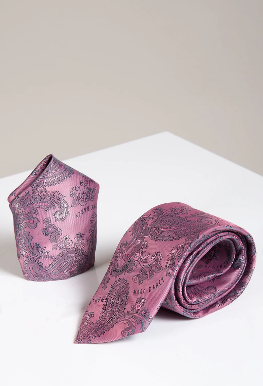 MD Pink Paisley Tie & Pocket Square Set