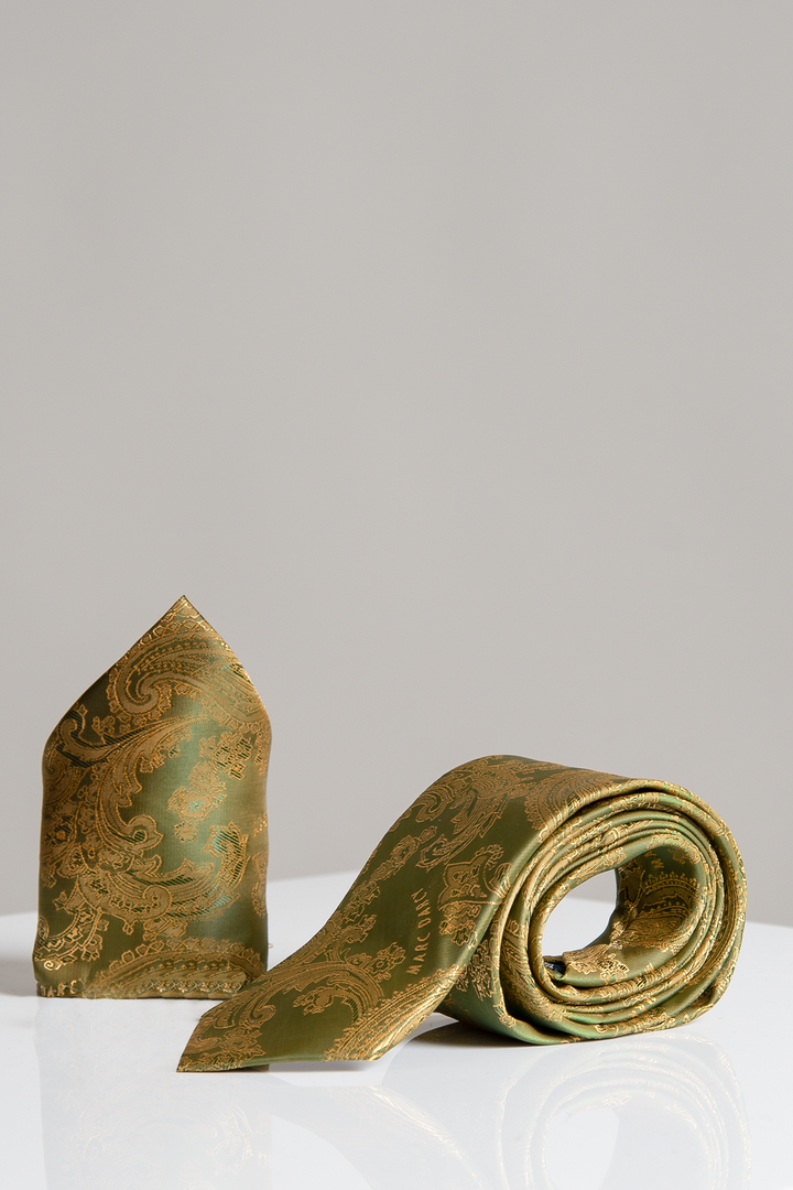 MD Green Paisley Tie & Pocket Square Set