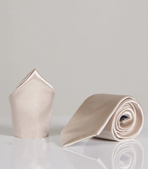 Stanley Champagne Satin Tie and Pocket Square